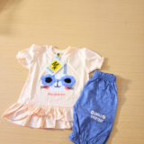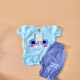 • Color: Sunny yellow peach and blue top with blue shorts.