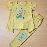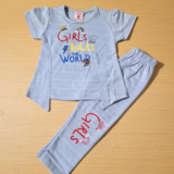 Girls rule! 💪 This adorable two-piece set features a fun and empowering graphic tee and comfy leggings. Perfect for your little world-changer!